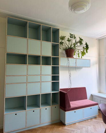B140xH140xD40, HPL, 3x lade 6x deur, €2750